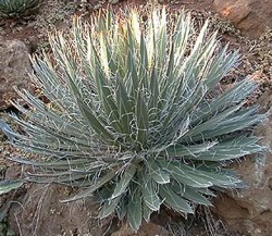 Frost Tolerance: Hardy to 12°F ( -11°C); Minimum Avg. Temperature: 50°F (10°C); Heat Tolerance: Excellent; Sun Exposure: Full sun; A thick-leafed evergreen succulent which dies after blooming. It has pointed leaves which form a basal rosette. It has a slow growth rate. It becomes very large.