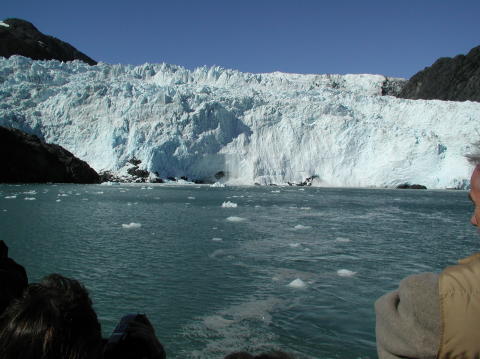 Ice tumbles to the left of the river