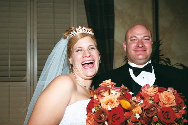 Steph with her silly brother and his bouquet